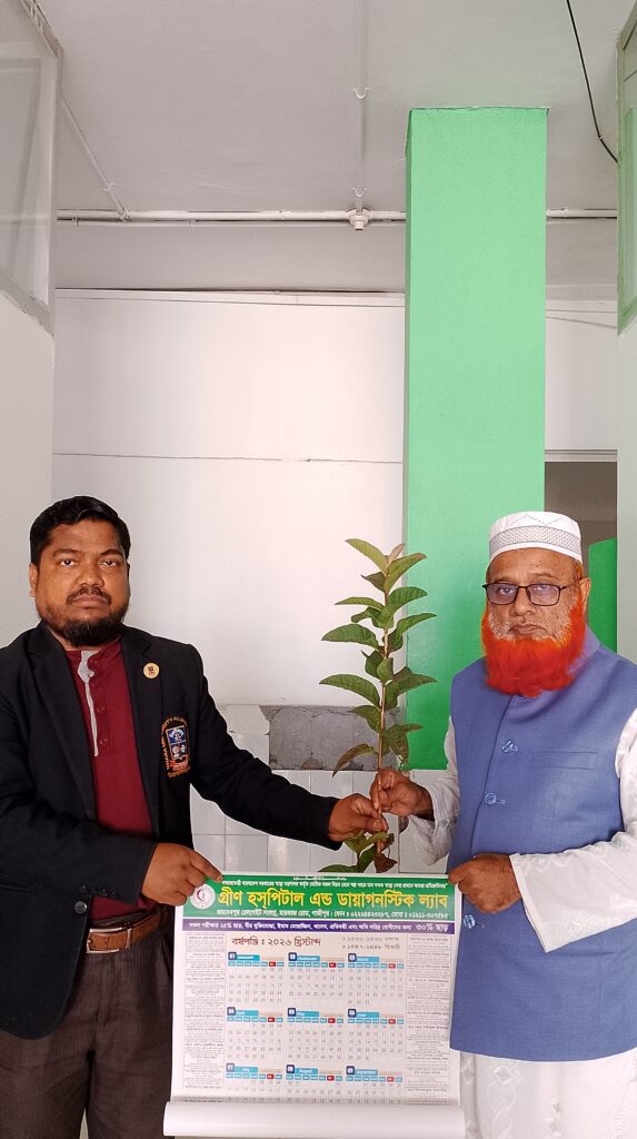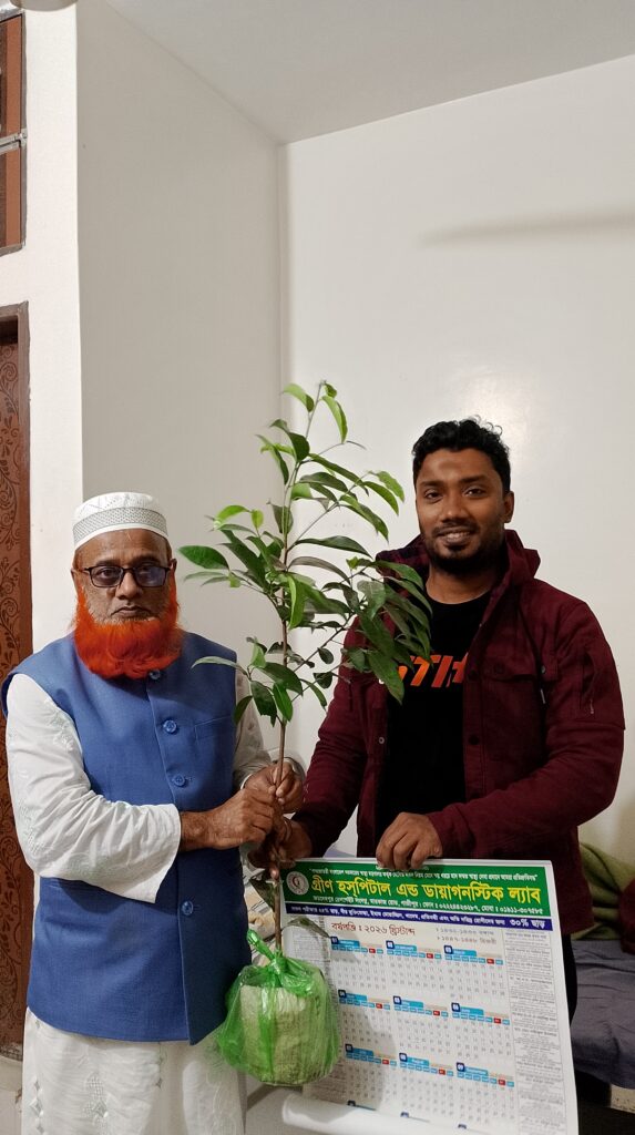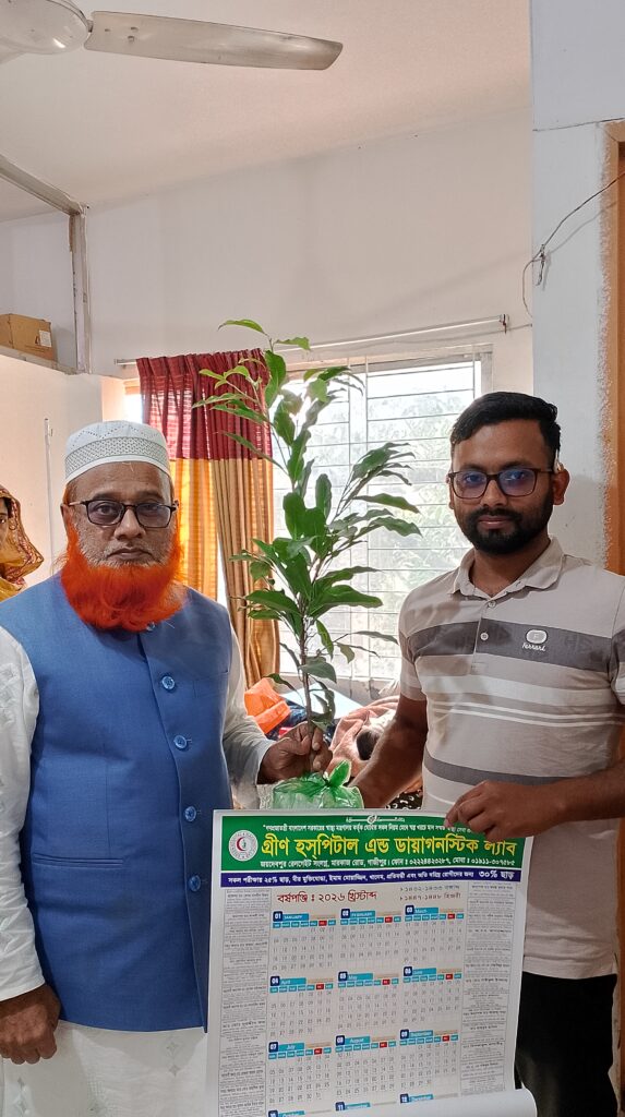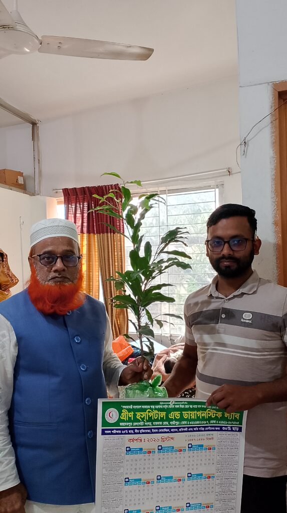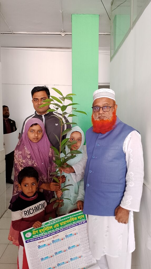 বাংলাদেশের একমাত্র প্রতিষ্ঠান হিসেবে গ্রীন হসপিটাল এন্ড ডায়াগনস্টিক ল্যাব গাজীপুর ভর্তি রোগীদের বিদায় বেলায় পরিবেশবান্ধব গাছ উপহার দিয়ে আসছে। বিদায়ী রোগীদের গাছের চারা উপহার দিচ্ছেন অত্র প্রতিষ্ঠানেরস্বত্বাধিকারী মোঃ ইসমাইল মোল্যা।